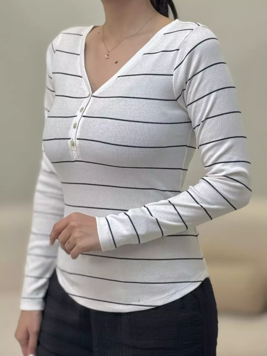 تیشرت آستین بلند جلو دکمه کبریتی