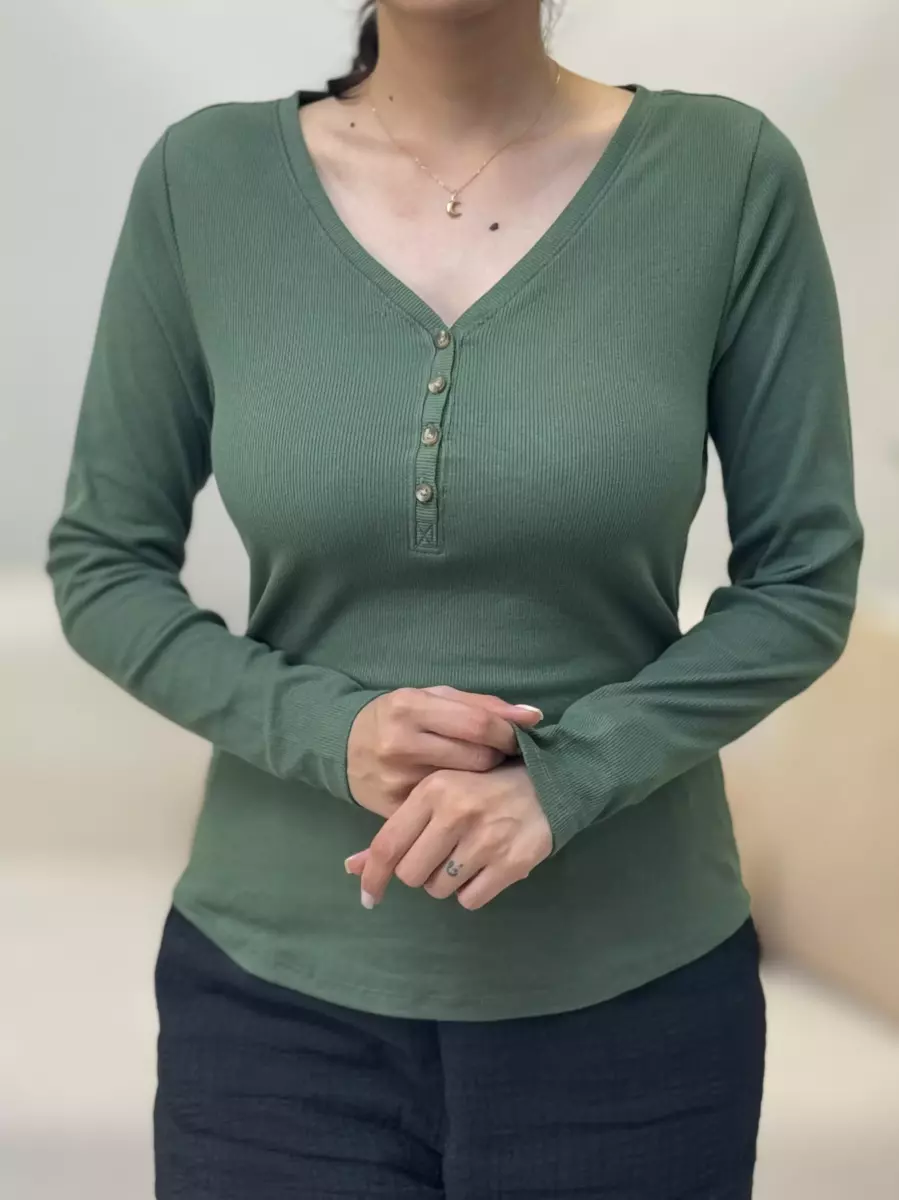 - تیشرت آستین بلند جلو دکمه کبریتی