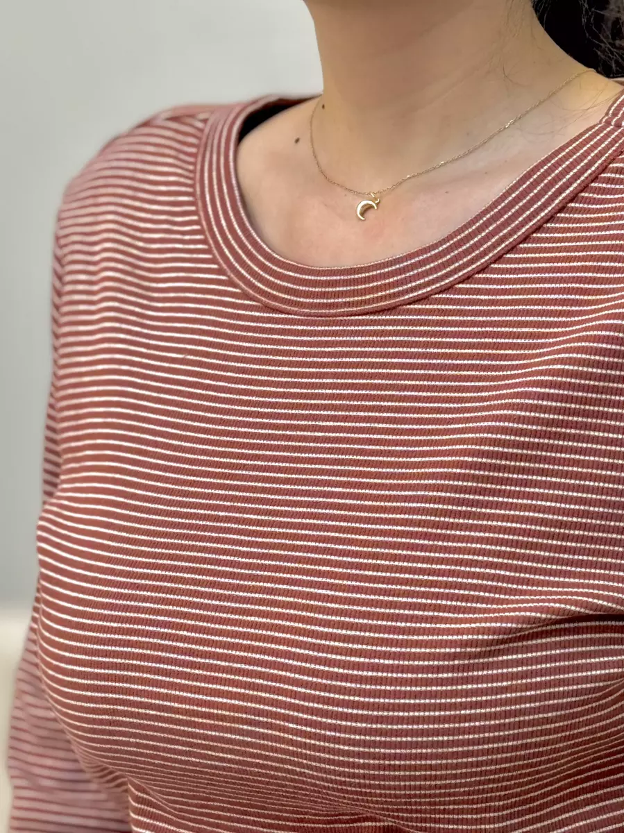 تیشرت آستین بلند راه راه (مشکی/عنابی/سفید)