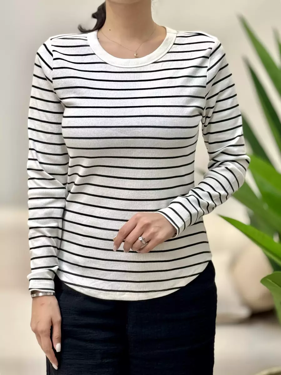 - تیشرت آستین بلند راه راه (مشکی/عنابی/سفید)